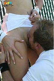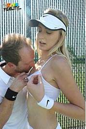 Coach Ryan is helping Alexa Grace up her tennis game out on the court but can't take his eyes off of those long legs and firm ass under that short skirt. He helps her cool down in the shower and she thanks him by taking his racket down her throat and deep in her teen pussy.